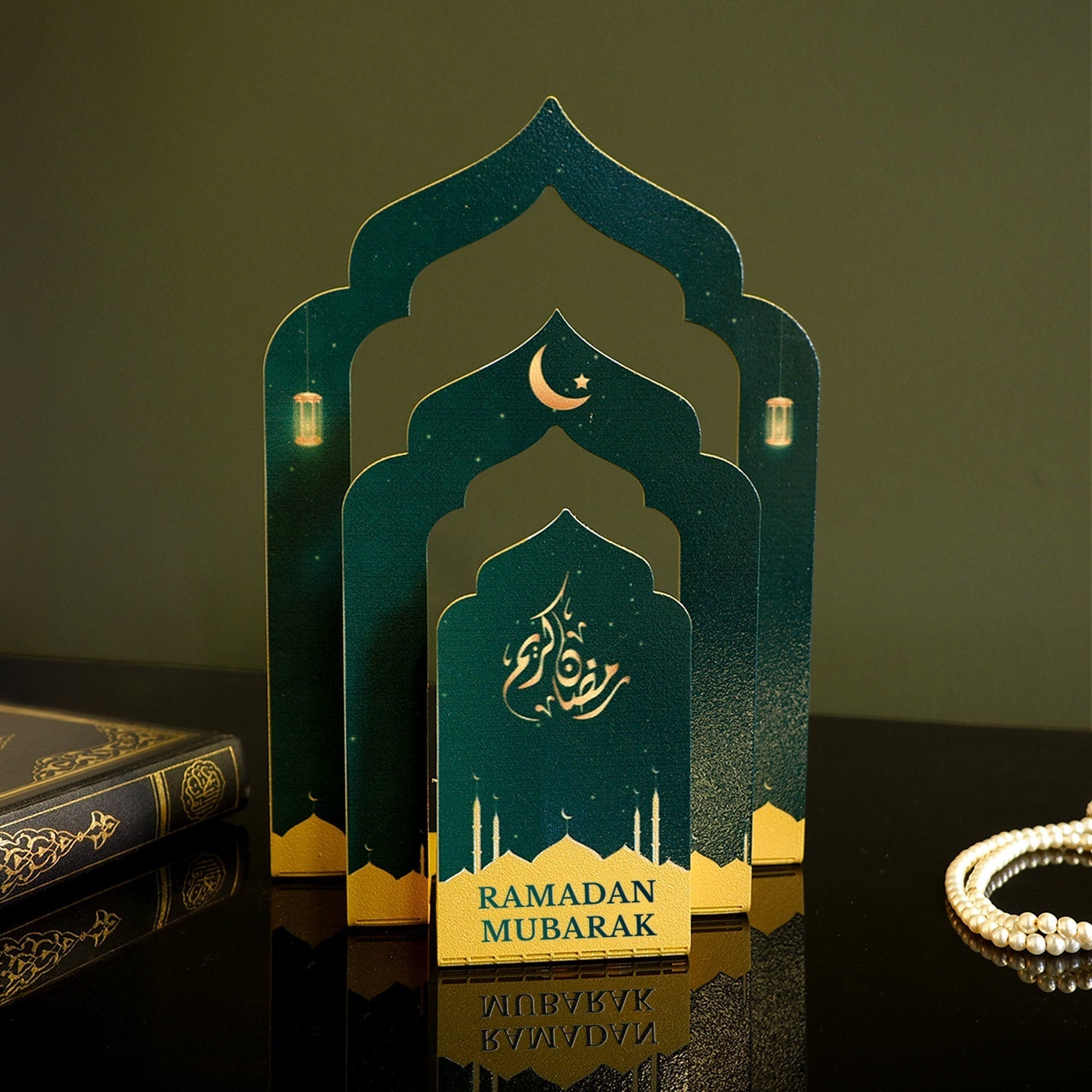 Ramadan Mubarak Written Metal Candleholder and Quran Holder - WAMH222