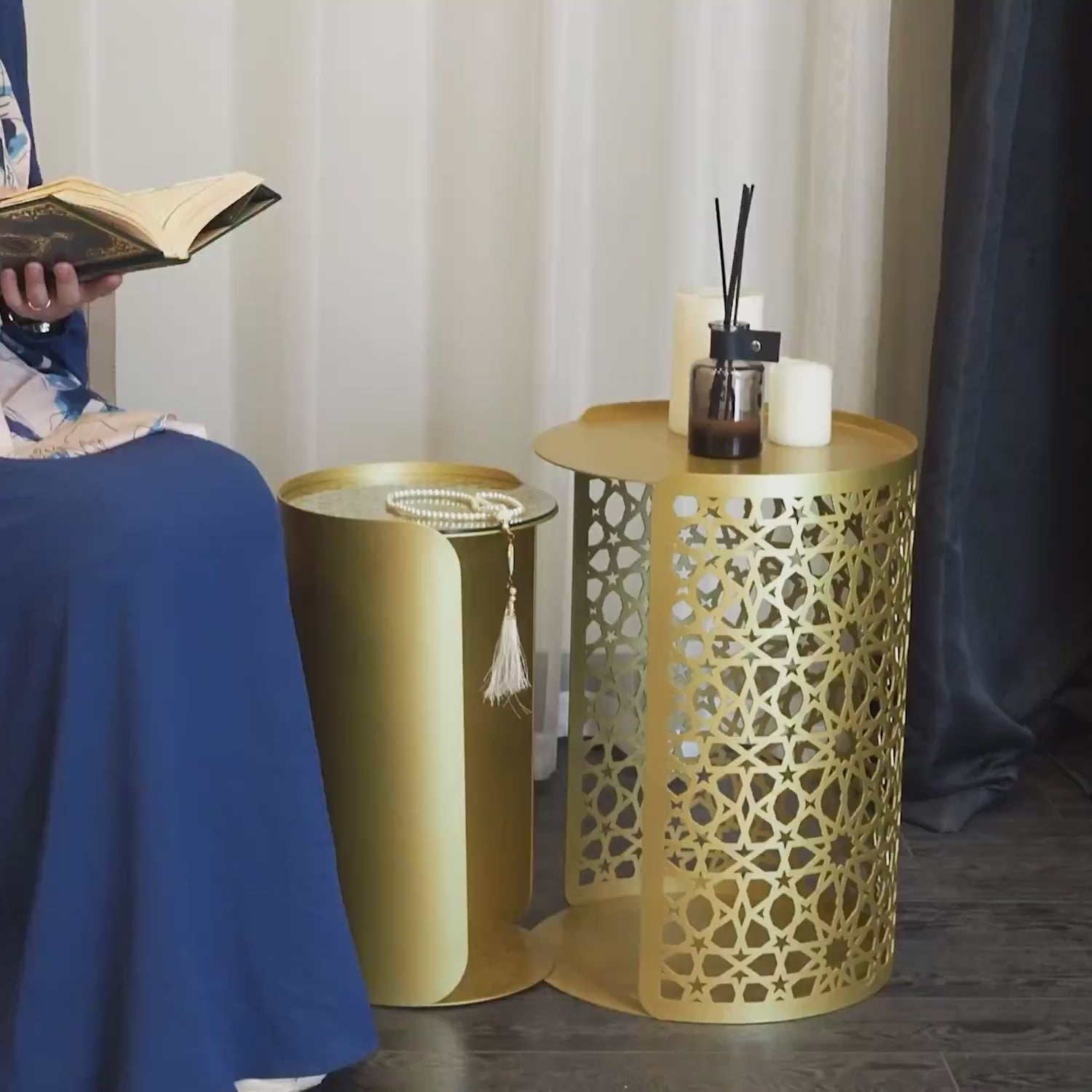 The Zultanit Side Table Set is a refined expression of balance, craftsmanship, and timeless design. Inspired by the elegance of Islamic forms, each table carries a quiet sophistication that elevates the space it inhabits. More than functional pieces, they serve as sculptural accents—adding depth, harmony, and a sense of understated luxury to your interior.
