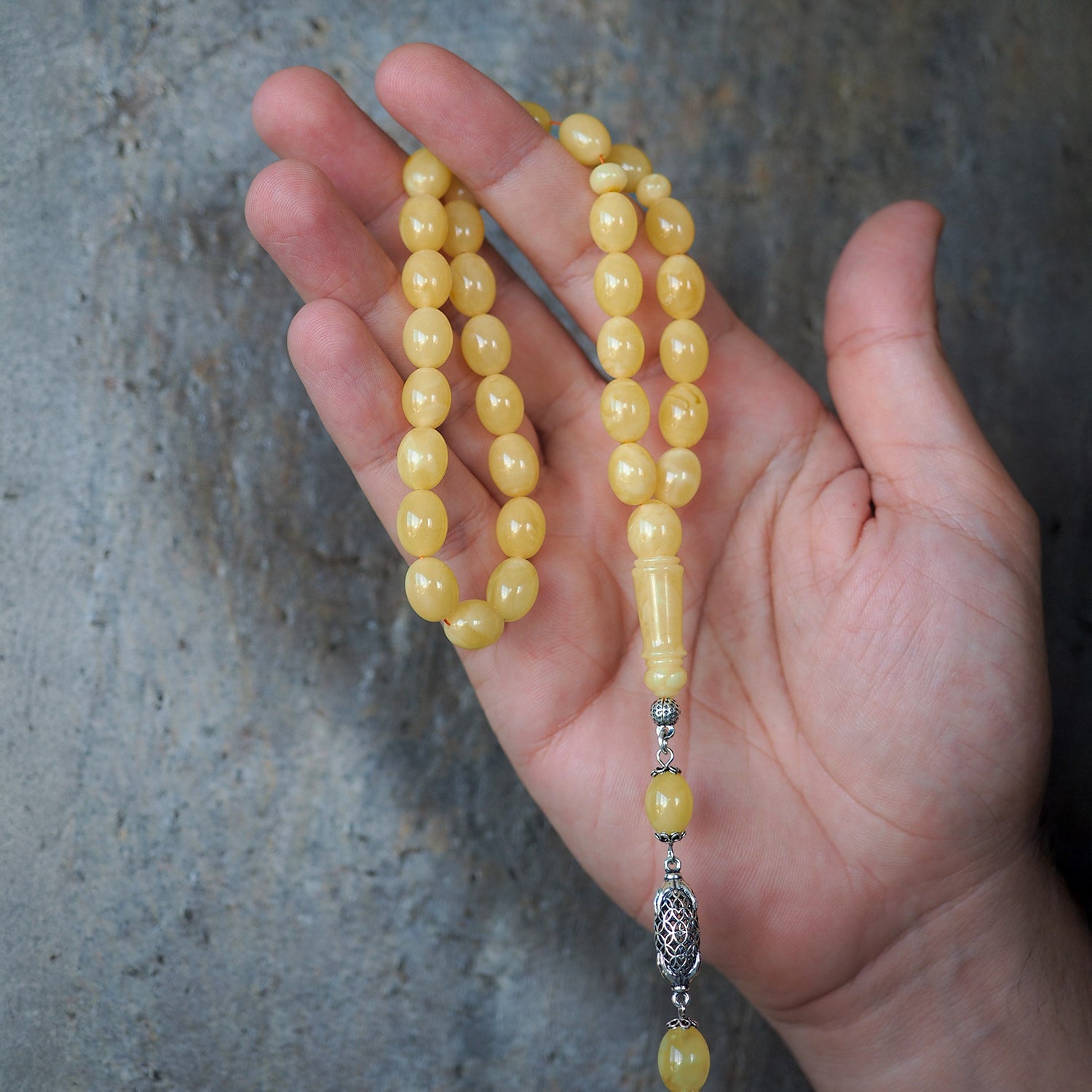 Each handmade tasbeeh may display natural variations in tone and clarity, reflecting the authentic character of genuine Baltic amber and making every piece truly one of a kind.